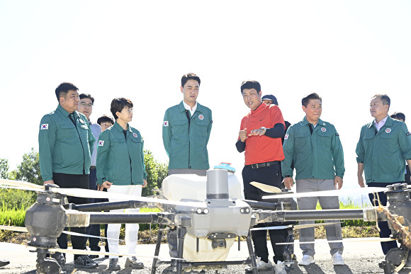 특히 이번 방제에는 도열병, 벼멸구, 혹명나방 등 주요 병해충을 겨냥한 살충제·살균제 외에도, 유기농업자재로 등록된 규산질 비료가 함께 살포돼 벼 도복 방지 효과도 기대된다.