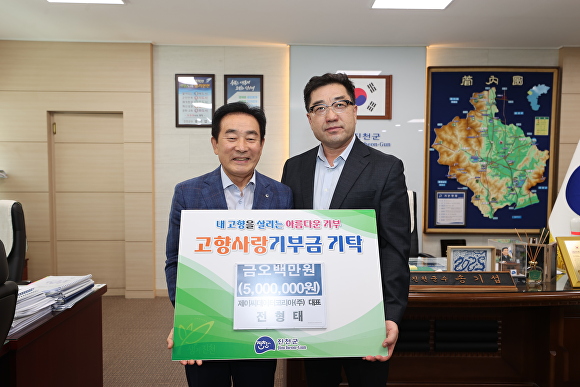 [아이뉴스24 장예린 기자] 전형태 제이씨데이터코리아(주) 대표가 29일 충북 진천군에 고향사랑기부금 500만원을 기탁했다. 전형태 대표는 이날 진천군청에서 열린 기탁식에서 “고향을 향한 고마움과 애정을 실천으로 전하고 싶었다”며 “이번 기부가 진천군 복지 증진과 지역사회 발전에 도움이 되기를 바란다”고 말했다. 제이씨데이터코리아는 데이터 기반 스마트 기술을 바탕으로, 다양한 공공·민간 프로젝트를 수행하는 IT 전문기업이다.