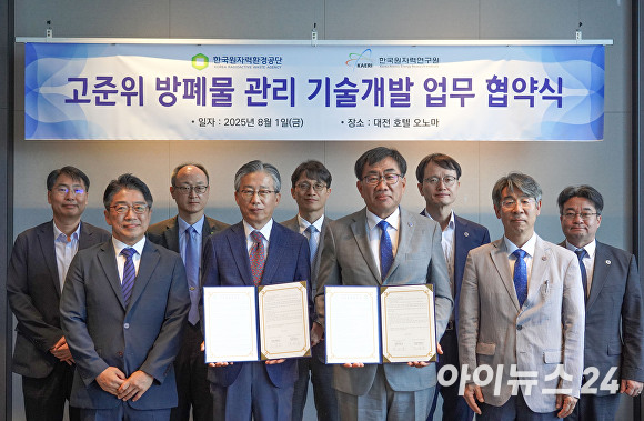 이번 협약은 지난 3월 제정된 '고준위 방사성폐기물 관리에 관한 특별법'에 따라 관련 기술개발을 강화하고, 후속 사업의 성공적 추진을 위해 마련됐다. 협약식에는 조성돈 이사장과 주한규 원장을 비롯해 산업통상자원부 양기욱 원전전략기획관이 참석했다.