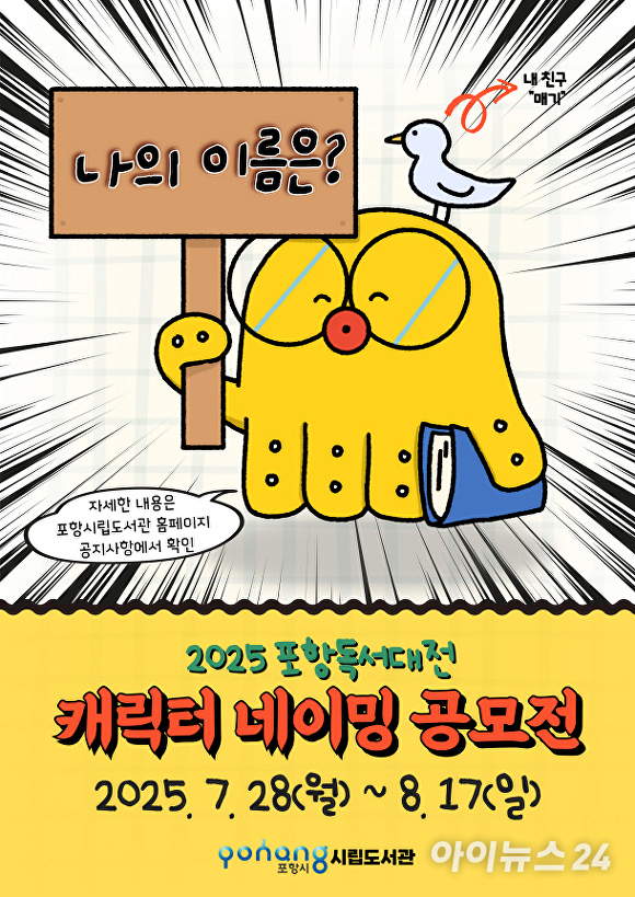 [아이뉴스24 이진우 기자] 경북 포항시는 오는 17일까지 '2025 포항독서대전 캐릭터 네이밍 공모전'을 연다고 5일 밝혔다.
