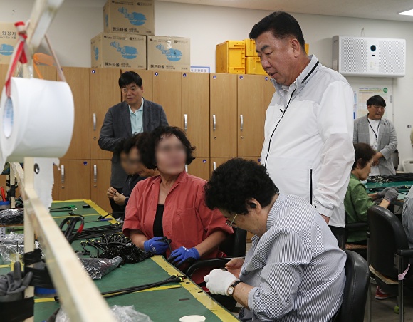 이 작업장은 어르신 23명이 자동차 부품(와이어링하네스)을 만드는 곳이다.