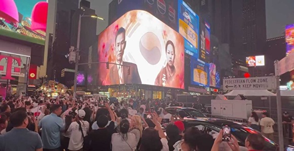 행사 당일인 15일 현지시각 오후 8시, 타임스스퀘어 전광판에 영상이 송출되자 교민들과 세계 각국 관광객들이 함께 만세를 외쳤다.