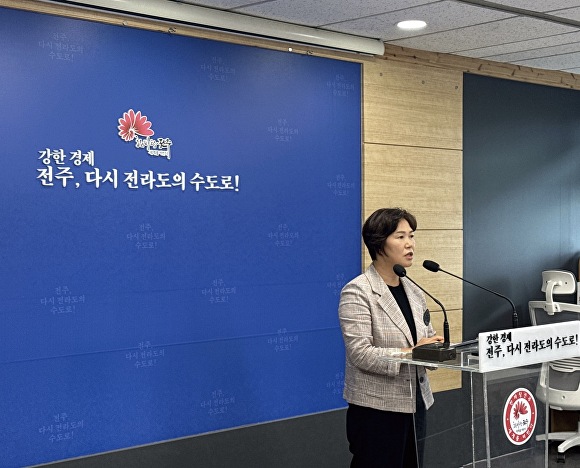 박미자 전주시정연구원장은 18일 시청에서 브리핑을 열고 123개 새 정부 국정운영방침에 대응한 국책사업발굴 계획을 발표했다.