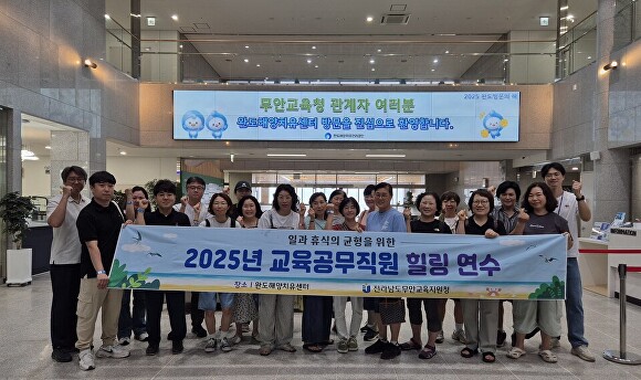 [아이뉴스24 한봉수 기자] 전라남도무안교육지원청(교육장 김보훈)은 지난 7일부터 8일까지 이틀간 완도해양치유센터에서 교육공무직원의 일과 휴식의 균형·스트레스 해소를 위해 '교육공무직원 힐링' 연수를 운영했다고 밝혔다.