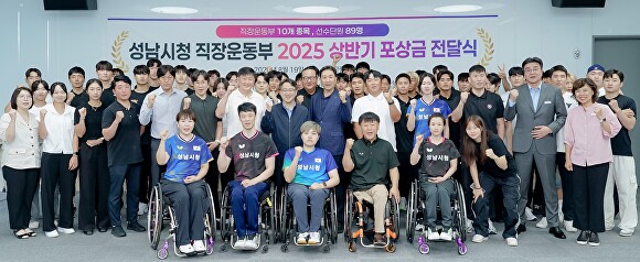 시는 이날 시청 2층 모란관에서 임종철 성남시부시장 등이 참석한 가운데 ‘2025년 상반기 직장운동부 입상 단원 포상금 전달식’을 개최했다.