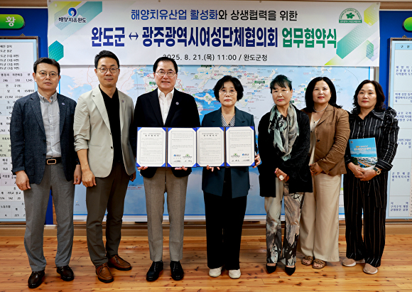 [아이뉴스24 김상진 기자] 전남 완도군이 광주여성단체협의회와 완도해양치유산업 활성화, 광주여성단체협의회와의 상생을 위한 업무 협약을 체결했다고 26일 밝혔다.