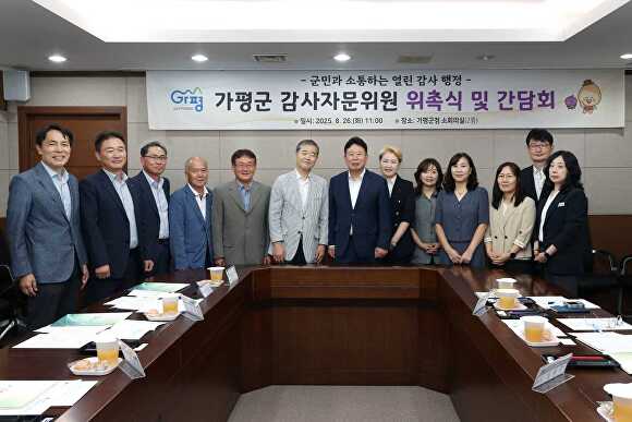 위원회는 가평군 감사담당관을 당연직 위원으로 해 중앙 및 지방자치단체에서 감사 경험을 보유한 전·현직 공무원과 민간 전문가들이 함께 참여한다. 위촉된 위원들은 오는 2026년 8월까지 2년간 활동하며 △감사 운영 방향 △감사계획 수립 △제도 개선 등 감사와 관련된 주요 사안을 자문·심의하게 된다.