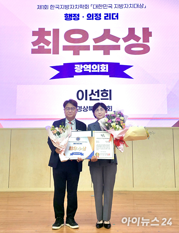 [아이뉴스24 이진우 기자] 이선희 경상북도의회 기획경제위원장(청도·국민의힘)이 지난 29일 전북대학교에서 열린 한국지방자치학회 주관 '제1회 대한민국 지방자치대상'에서 행정·의정 리더 부문 최우수상을 수상했다.