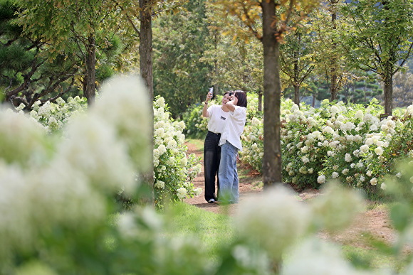 [아이뉴스24 박종수 기자] 전북 임실군 대표 관광지인 옥정호 붕어섬 생태공원에 여름철 대표 꽃인 수국이 만개하면서 막바지 여름철에 방문하는 관광객들을 위한 특별한 경관을 선사하고 있다.