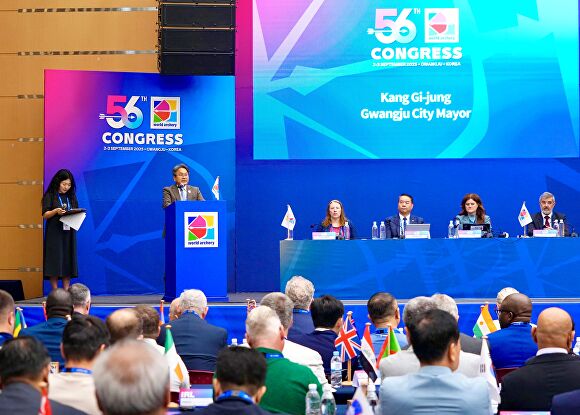 강기정 시장은 이날 환영사에서 “광주는 고대 마한의 활 문화부터 시작해 세계적인 선수들을 배출한 양궁의 도시이자 하계유니버시아드·세계수영선수권대회 등 국제대회를 성공적으로 치른 도시”라며 “전 세계에 평화의 울림을 전하고, 광주가 세계 평화와 축제의 장이 될 수 있도록 이번 총회와 세계양궁선수권대회가 대회가 끝날 때까지 최선을 다하겠다”고 전했다.