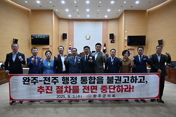 또 서 의원은 “완주군의회는 이번 결의안을 통해 반복된 통합 논의의 역사적 실패를 종식시키고, 주민의 자치권을 보호하며 군정의 안정과 지역 발전의 올바른 방향을 모색하겠다”고 밝혔다.