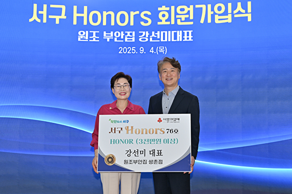 [포토뉴스]광주 서구, 강선미 원조부안집 쌍촌점 대표 서구아너스 회원 가입 입력 2025.09.04 오후 5:27 본문 글자 크기 설정 글자크기 설정 시 다른 기사의 본문도 동일하게 적용됩니다. [아이뉴스24 한봉수 기자] 광주 서구는 4일 구청 기부자 명예의 전당에서 원조부안집 쌍촌점 강선미 대표의 서구아너스 회원 가입식을 가졌다.[사진=광주시 서구] /광주=한봉수 기자(onda88@inews24.com) 좋아요 응원수