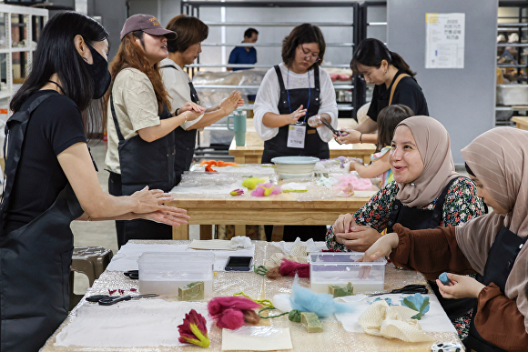 북적인 건 전시장만이 아니다. 키르기즈공화국 전통공예 ODA 특별전 일환으로 진행한 펠트 공예클래스는 일찌감치 마감됐다.