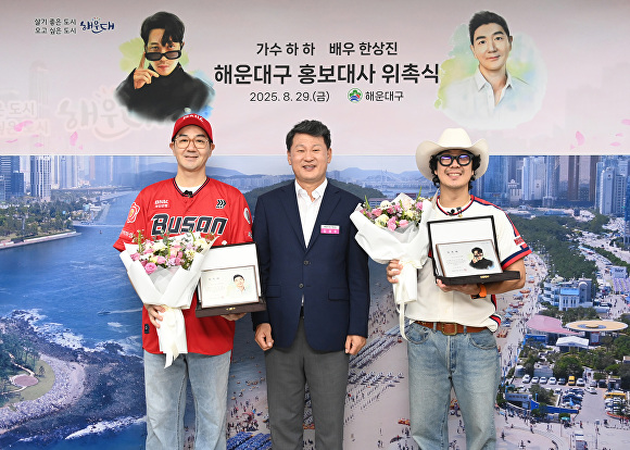 [아이뉴스24 정예진 기자] 부산광역시 해운대구가 지난달 29일 가수 하하와 배우 한상진을 해운대구 홍보대사로 위촉했다. 두 사람은 앞으로 2년간 해운대를 알리는 데 앞장서게 된다.