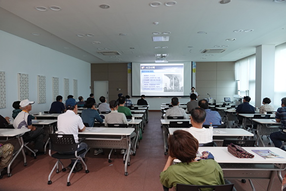 오늘 안성맞춤 아트홀에서 숙박시설 관계자 대상으로 소방안전교육을 하고 있다. [사진=안성소방서]