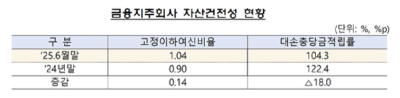 금감원은 "양호한 실적에도 연체율 상승 등 금융권 전반의 잠재 리스크에 대비한 완충능력 확보가 필요하다"며 "자회사 건전성 제고와 불건전 영업 행위 방지, 생산적 금융 지원을 강화하겠다"고 밝혔다.