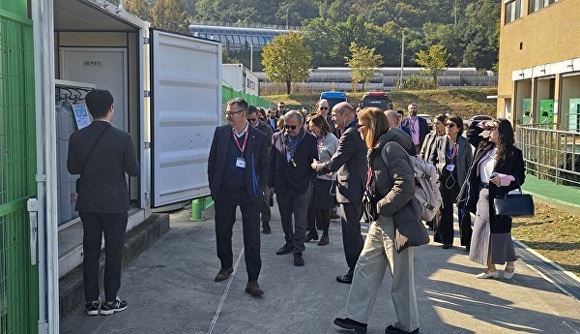 성남정수장의 그린수소 실증시설은 기후에너지환경부와 협력해 구축한 국내 최초의 수력 연계형 그린수소 생산시설로, 소수력 발전기 2기(700㎾)를 활용해 하루 18톤의 물을 전기분해해 수소 승용차 약 40대를 충전할 수 있는 188㎏의 수소를 생산한다. 대표단은 생산부터 저장·출하까지 전 과정을 살펴보며 친환경 수소의 상용화 가능성에 큰 관심을 보였다.