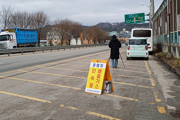 군은 자동차 배출가스를 주요 오염원으로 보고, 운행차 배출가스 점검과 공회전 단속을 강화하기 위한 전담 단속반을 편성했다.