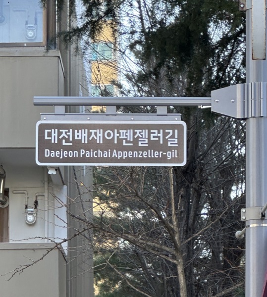 [아이뉴스24 강일 기자] 대전 서구는 배재대학교 정문 진입로 일원 213m 구간에 ‘대전배재아펜젤러길’명예도로명을 부여했다.