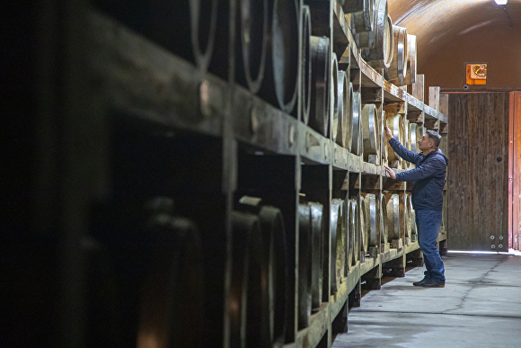 저장고에는 3단 높이로 쌓아놓은 오크통이 가득하고, 저마다 이름표처럼 용량과 날짜가 적혀 있어 묵직한 시간이 켜켜이 쌓인 느낌을 준다.