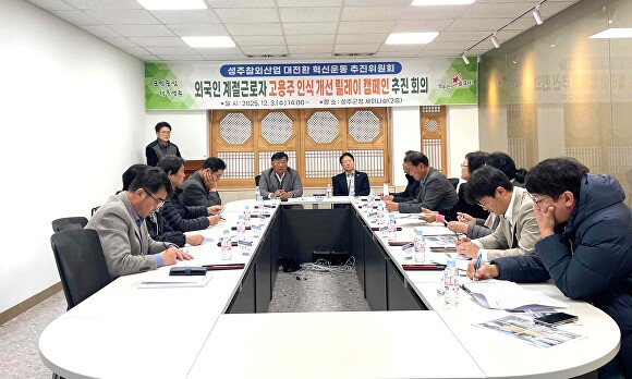 [아이뉴스24 이창재 기자] 경북 성주참외산업 대전환 혁신운동 추진위원회(위원장 배선호)가 3일 군청 세미나실에서 농업인 단체장들과 긴급 대책회의를 열고, 외국인 계절근로자 증가에 따른 근로·주거환경 문제 개선에 본격 나서기로 했다.