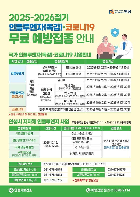 관련 정보는 안성시보건소 누리집과 예방접종도우미 누리집에서 확인할 수 있다.