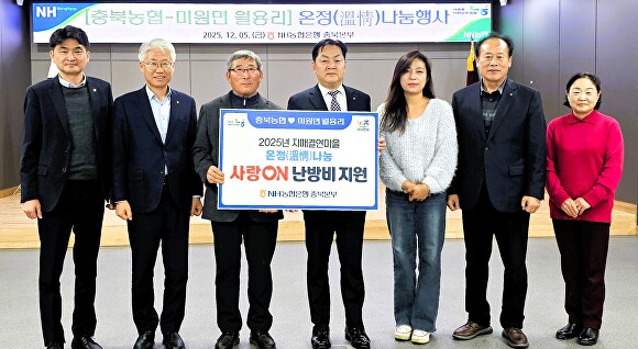 [아이뉴스24 이용민 기자] NH농협은행 충북본부(본부장 임세빈)는 5일 충북본부에서 자매결연마을인 충북 청주시 상당구 미원면 월용리에 난방비 지원 온정 나눔 행사를 열었다.