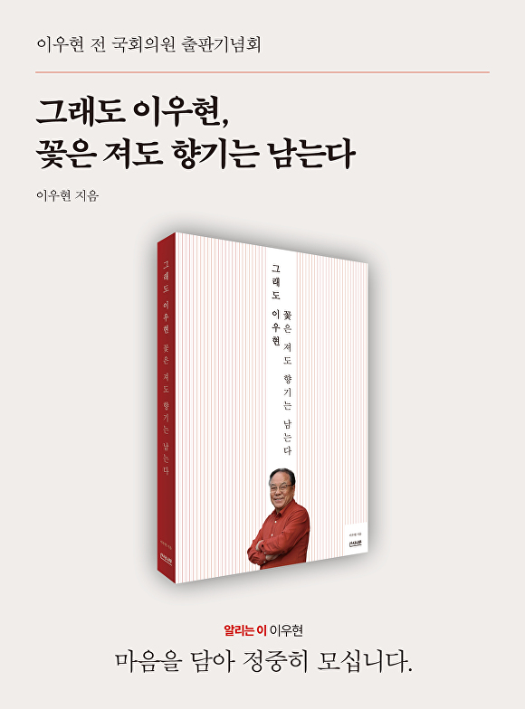 그의 저서 제목은 ‘그래도 이우현, 꽃은 져도 향기는 남는다’다. 그는 이 제목에 자신의 삶과 정치 철학, 시련, 복귀 의지를 모두 담았다고 설명했다.