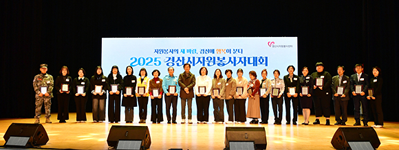 [아이뉴스24 이창재 기자] 경북 경산시자원봉사센터(소장 류진열)는 지난 6일 경산시민회관 대강당에서 '2025 경산시 자원봉사자 대회'를 열고 한 해 동안 지역 곳곳에서 나눔을 실천한 자원봉사자들을 격려했다. 행사에는 자원봉사자와 관계자 등 600여 명이 참석했다.