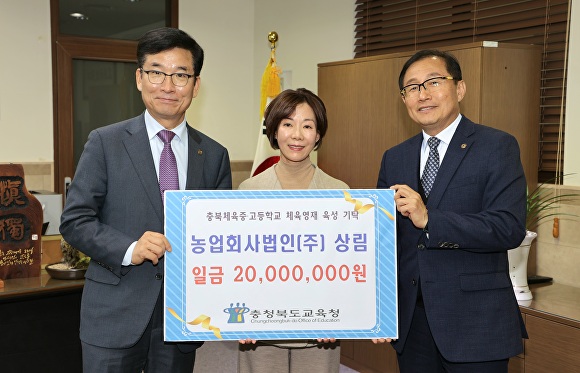 [아이뉴스24 장예린 기자] 충북도교육청은 농업회사법인 (주)상림(대표이사 박언주)이 8일 충북체육중·고등학교(교장 홍석영) 발전과 학생선수 지원을 위해 기탁금을 전달했다고 밝혔다.