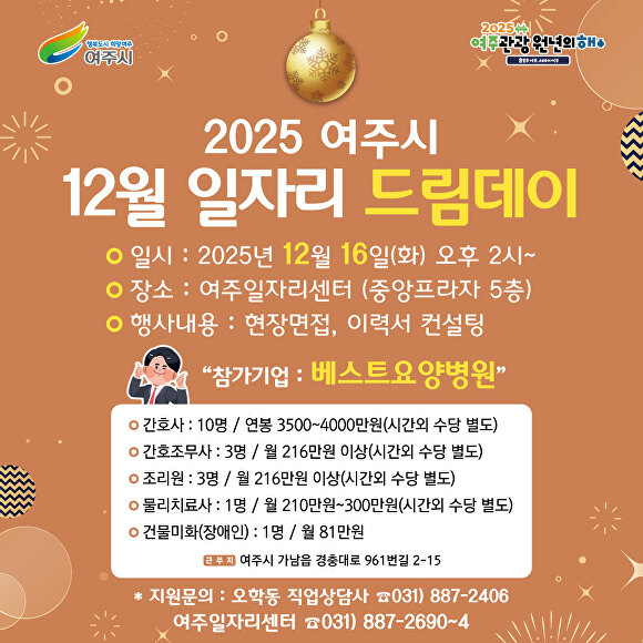 [아이뉴스24 임정규 기자] 경기도 여주시가 오는 16일 오후 2시 여주일자리센터에서 '2025년 마지막 여주시 일자리드림데이'를 개최한다.