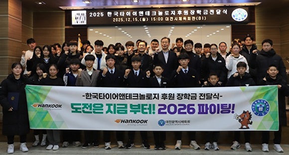 [아이뉴스24 김천겸 기자] 대전시체육회는 15일 대전시체육회 회의실에서 한국타이어앤테크놀로지가 후원하는 ‘2025 한국타이어앤크놀로지 후원 우수선수 장학금 전달식’을 개최했다.