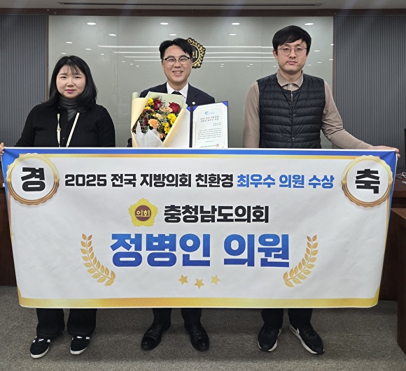 충남도의회 정병인 의원(천안8·더불어민주당)과 안장헌 의원(아산5·더불어민주당)은 (사)한국환경정보연구센터가 선정하는 ‘2025 전국지방의회 친환경 최우수의원’에 각각 이름을 올렸다고 18일 밝혔다. 안 의원은 이번 수상으로 2년 연속 선정됐다.