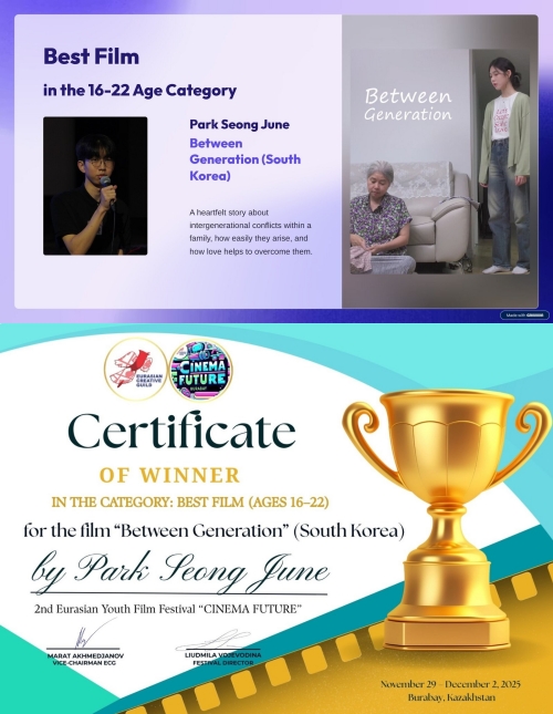 해당 영화제는 지난 2일 카자흐스탄에서 개최된 국제 청소년 영화제로 전 세계 청소년 영화인들이 참여하는 권위 있는 행사다.