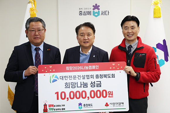 기탁식에는 김영환 충북도지사, 류근형 대한전문건설협회 충북도회장, 정동의 충북사회복지공동모금회 사무처장 등이 참석했다.