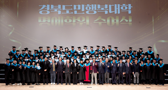 [아이뉴스24 이진우 기자] 경북도는 24일 도청 동락관에서 경북도민행복대학 21개 시·군 캠퍼스와 6개 대학캠퍼스 관계자 등 600여 명이 참석한 가운데, 학사 866명, 석사 142명, 박사 60명 등 총 1068명에게 명예학위를 수여했다.