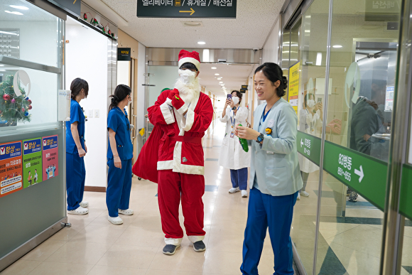 특히 83(소아)병동에서는 소아청소년과 이한얼 과장이 산타로 분장해 아이들에게 직접 선물을 전달하며 병동 분위기를 밝게 만들었다. 갑작스러운 산타의 등장에 아이들과 보호자들은 환한 표정으로 화답했고, 병동은 웃음과 온기로 가득 찼다.