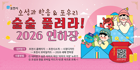 [아이뉴스24 김우주 기자] 경기도 포천시는 내년도 병오년(丙午年) 새해를 맞아 시민들이 감사와 따뜻한 마음을 손쉽게 전할 수 있도록 ‘2026 모바일 연하장’을 무료로 배포한다고 밝혔다.