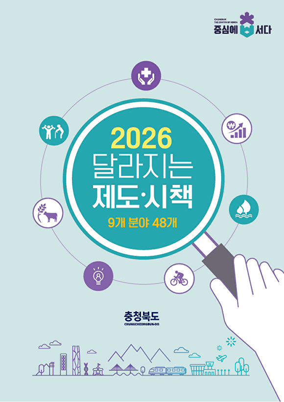 [아이뉴스24 이용민 기자] 충북도는 2026년 새해를 맞아 도민 생활과 밀접한 제도 변화와 신규 시책을 한눈에 살펴볼 수 있도록 ‘2026년 달라지는 제도·시책’을 30일 발표했다.