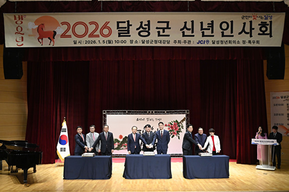 [아이뉴스24 이창재 기자] 대구 달성청년회의소(회장 안종민)는 5일 달성군청 대강당에서 2026년 신년인사회를 열고 병오년 새해의 힘찬 출발을 알렸다.
