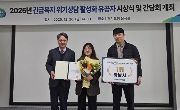 [아이뉴스24 정재수 기자] 경기도 하남시는 경기도가 주관 ‘긴급복지 위기상담 활성화 우수 지자체 평가’에서 1위로 선정돼 경기도지사 표창을 수상했다고 5일 밝혔다.