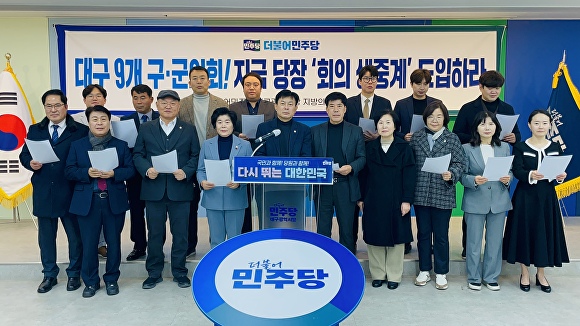 [아이뉴스24 이창재 기자] 더불어민주당 대구시당 지방의원협의회가 대구 지역 9개 구·군의회를 대상으로 본회의와 상임위원회 전 과정에 대한 ‘회의 실시간 생중계’ 전면 도입을 강력 촉구했다.