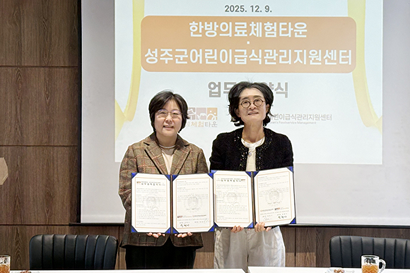 협약식은 한방의료체험타운에서 열렸고 정현아 한방의료체험타운 센터장과 양경미 성주군어린이급식관리지원센터장을 비롯한 양 기관 관계자들이 참석했다.