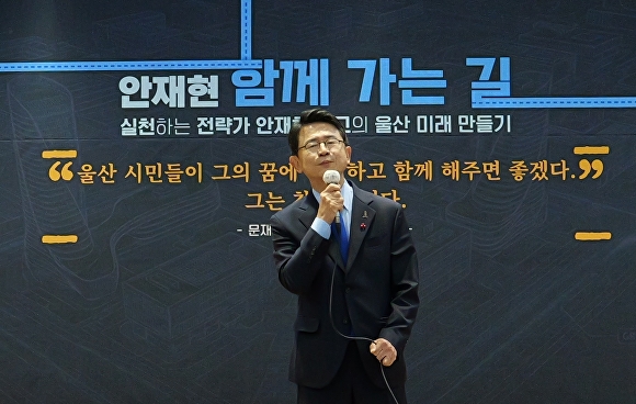 명계남 노무현재단 상임운영위원은 축사에서 "안재현은 노무현 대통령이 꿈꾸던 '사람 사는 세상'을 가장 낮은 곳에서 실천해 온 동지"라며 "그가 울산에서 이어가려는 '함께 가는 길'이 바로 노무현의 정신"이라고 추켜세웠다.