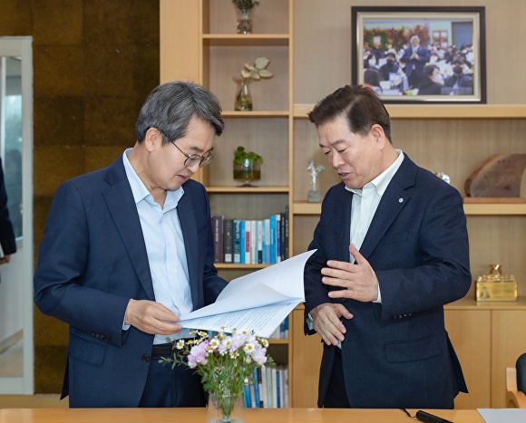 [아이뉴스24 정재수 기자] 박승원 광명시장이 김동연 경기도지사를 만나 목감교 확장과 광명스피돔 경륜장 인근 개발 등 광명시 주요 현안에 대한 경기도의 지원과 협조를 요청했다.