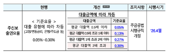 금융위는 "이번 개편으로 금융기관의 고액 주담대 취급 유인이 일정 부분 감소할 것으로 기대된다"며 "금융권은 남은 기간 동안 전산 개발 등 제도 이행 준비에 차질이 없도록 만전을 기해 달라"고 주문했다.