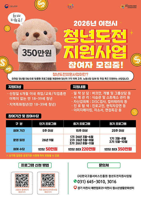 자세한 사항는 이천시 청년도전지원사업 운영사무실로 문의하면 된다.