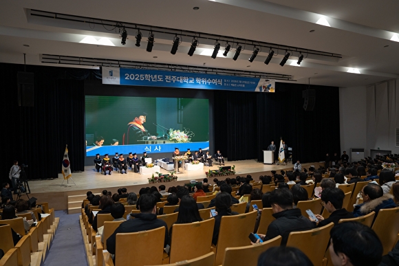 [아이뉴스24 박종수 기자] 전주대학교(총장 류두현)는 20일 오전 10시, 교내 예술관 JJ아트홀에서 졸업생과 가족, 내외빈이 참석한 가운데 ‘2025학년도 학위수여식’을 성황리에 개최했다.