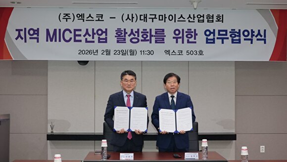 양 기관은 23일 대구 엑스코에서 ‘지역 MICE 산업 활성화 및 상생협력 체계 구축’을 위한 업무협약을 체결하고, 지역 특화 MICE 모델 개발과 기업 성장을 위한 공동 대응에 나서기로 했다.