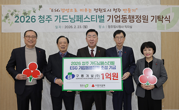 [아이뉴스24 안영록 기자] 구룡개발㈜(대표 연제수)가 23일 ‘대한민국 정원박람회 2026 청주 가드닝페스티벌’의 성공 개최를 위해 충북 청주시에 기업동행정원 조성 기부금 1억원을 기탁했다.